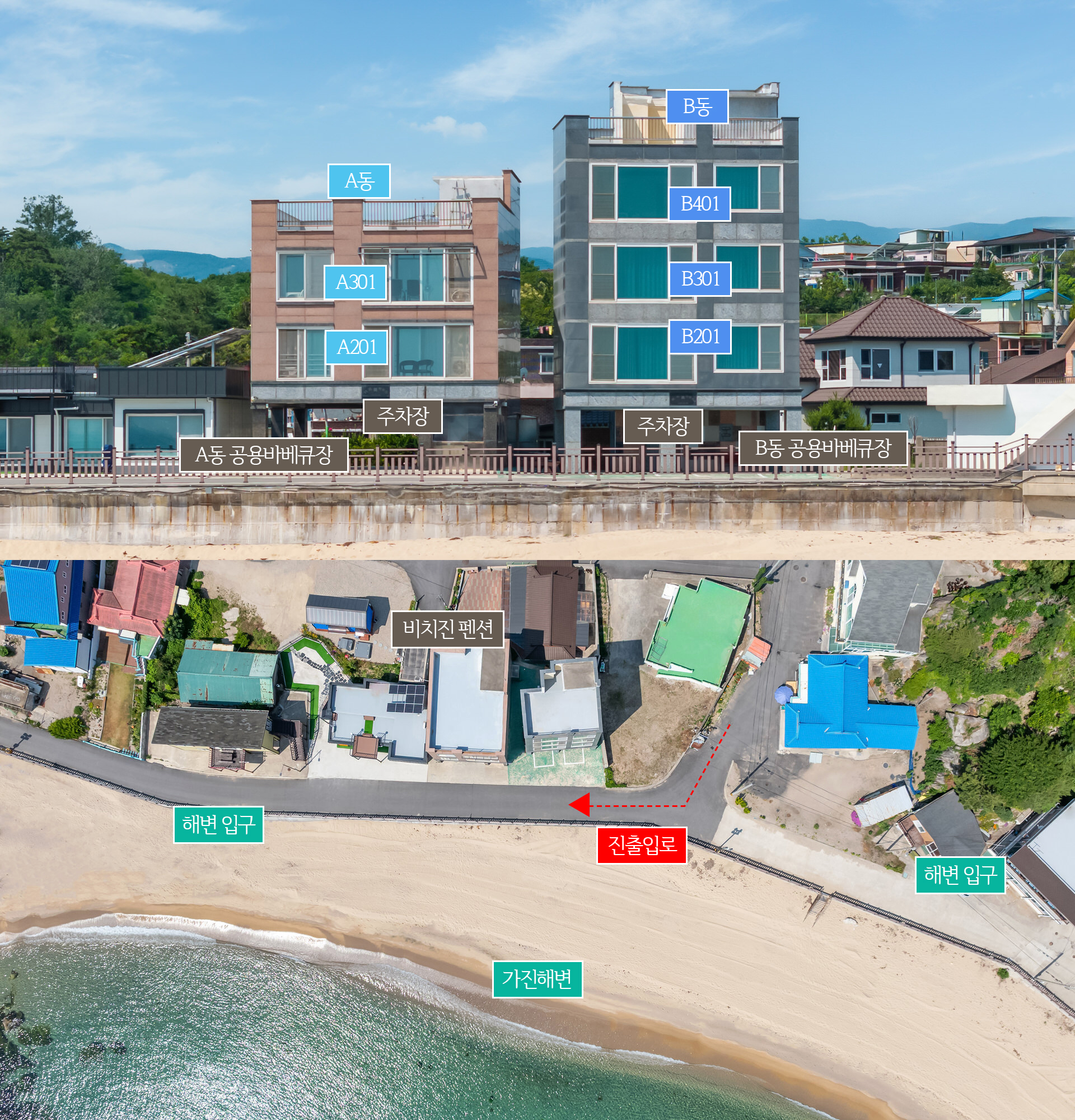 고성 비치진 스파 펜션의 객실을 미리 만나보세요.